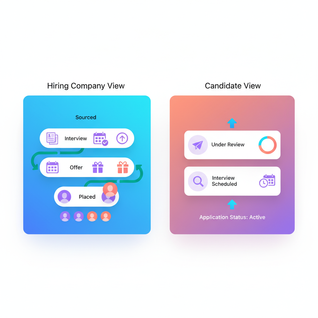 A candidate portal lets applicants track their application status, see which roles they’ve been submitted for, view upcoming interview schedules, and receive automated notifications when their status changes. It’s basic transparency, but it dramatically reduces inbound inquiries and improves the candidate experience.